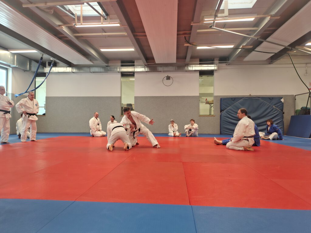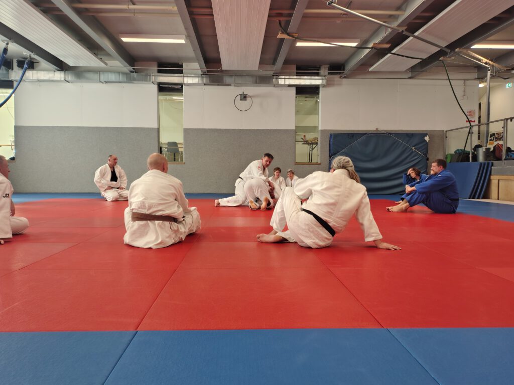 Nach einer Mittagspause mit sehr guter Verpflegung durch den Judo Club Konstanz folgte die Praxiseinheit auf der Matte. Hier wurden Standardsituationen und mögliche Lösungen in Form einer längeren Trainingseinheit vermittelt, bei der mehr Übungen als in einem regulären Training durchgeführt wurden.